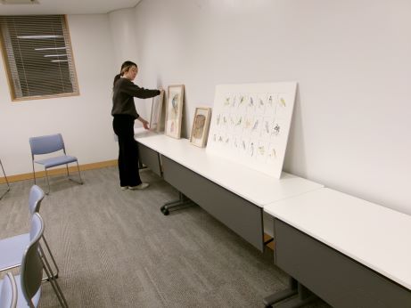 北茨城市地域おこし協力隊の徳本萌子さんが来館し、会場を彩る作品の展示を行いました。
